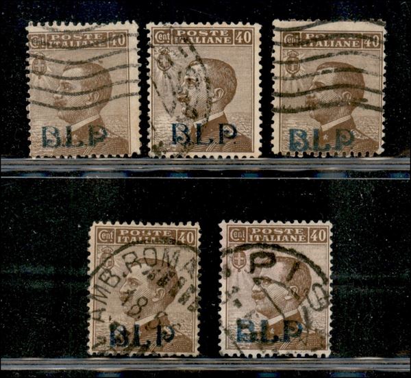 1921 - 40 cent BLP (4) - insieme di 5 valori usati con soprastampe di colori diversi - da esaminare