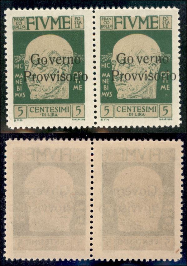 1921 - 5 cent Governo Provvisorio (149 varietà) - coppia orizzontale con soprastampe a destra - gomma integra - non catalogato
