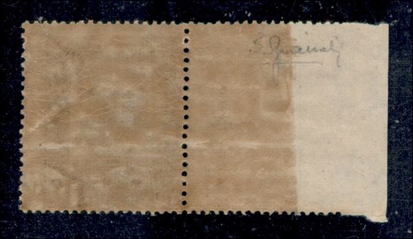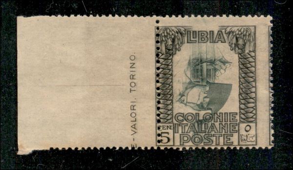 1921 - 5 cent Pittorica (23c) bordo foglio con centro capovolto - gomma integra con falla naturale in orizzontale
