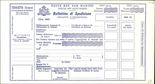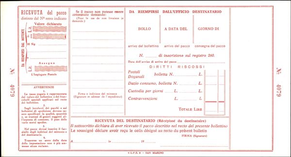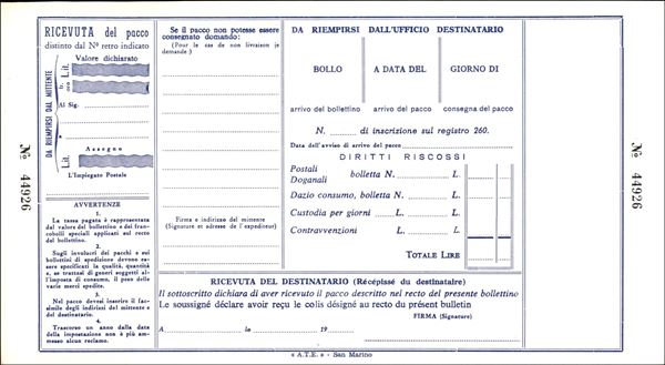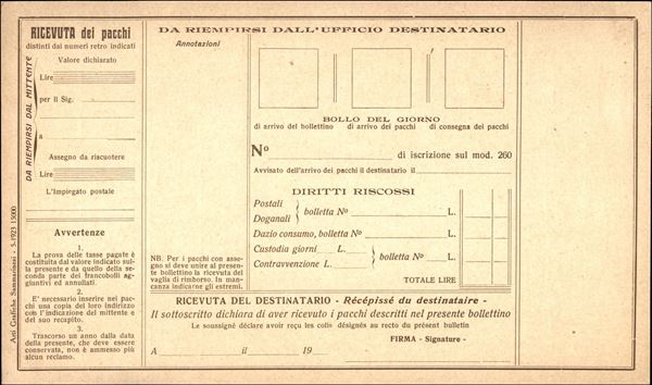 1923/1971 - Insieme di tre Bollettini Pacchi (P13 + P18 + P22) nuovi