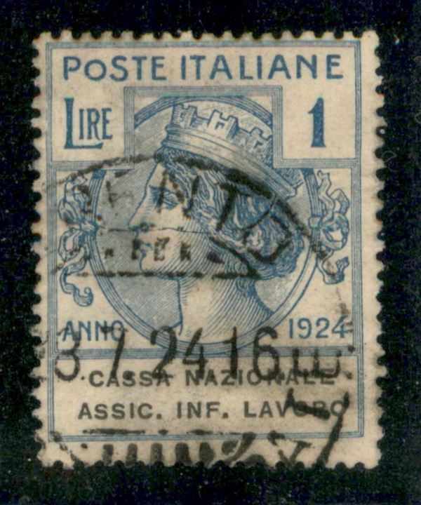 1924 - 1 lira Cassa Nazionale Assic. Inf. Lavoro (22) - usato