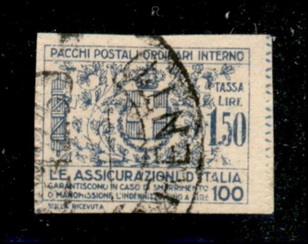 1926 - 1,50 lire Assicurazioni (9) - parte di destra ritagliata con le forbici - usato