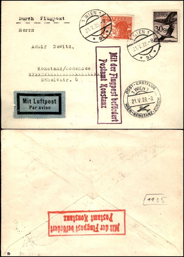 1928 (21 maggio) - Vienna Konstanz - aerogramma del volo