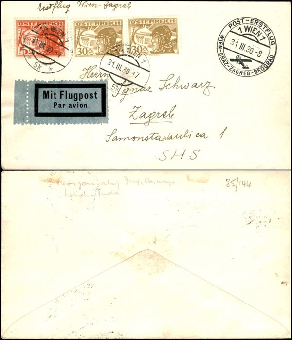 1930 (31 marzo) - Wien Zagreb - aerogramma del volo