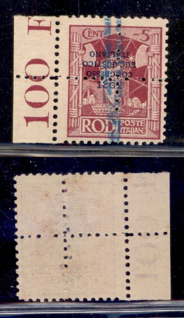 1931 - Demonetizzato - 5 cent Congresso Eucaristico (30d) con soprastampe capovolte - gomma integra (120)