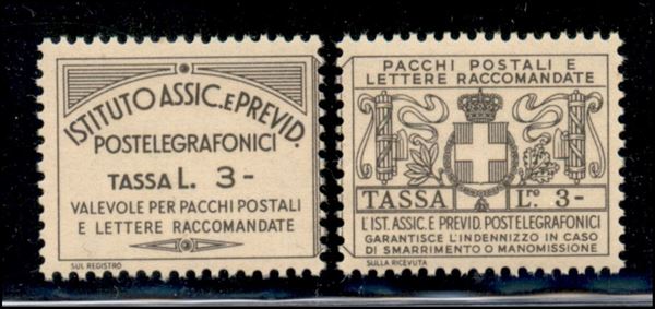1936 - 3 lire Assicurazioni (15) - due metà separate - gomma integra