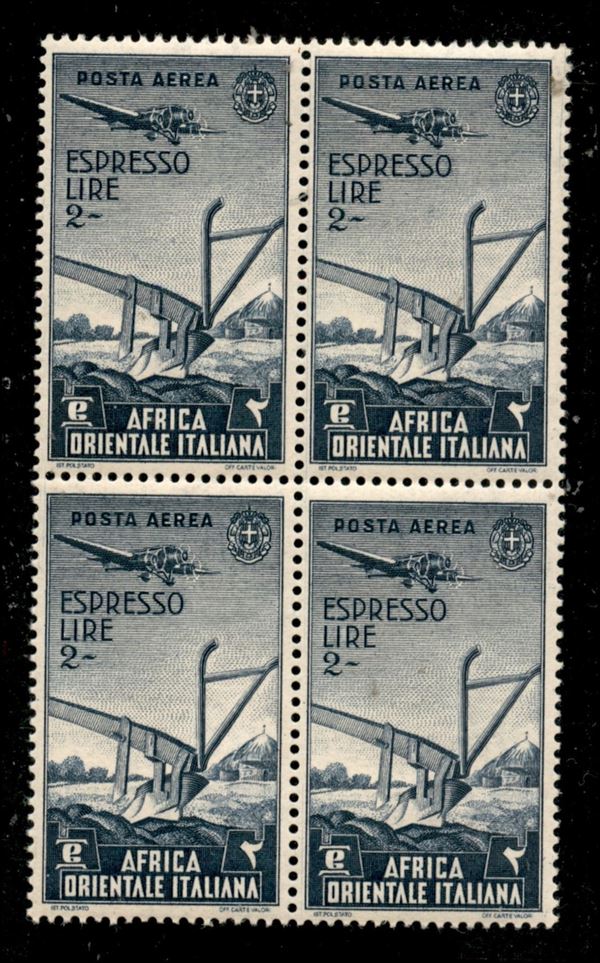 1938 - 2 lire Aeroespresso (12) in quartina - gomma integra