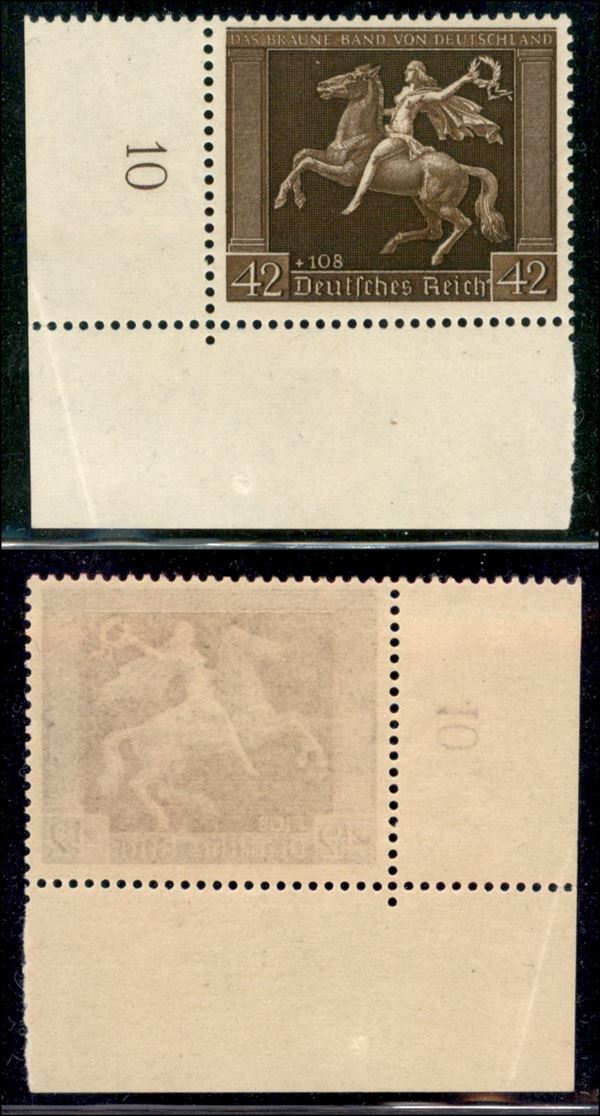 1938 - 42 + 108 pfennig Corsa dei Cavalli (671) - angolo di foglio - gomma integra - molto bello