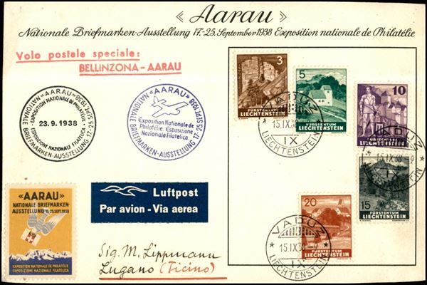 1938 (23 settembre) - Bellinzona Aaran - aerogramma da Vaduz a Lugano