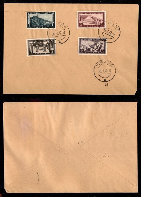 1939 - Ordinaria (26/29) - 4 alti valori usati su busta - Tirana 28.4.42
