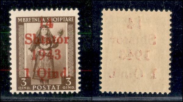 1943 - 1 qind su 3 (1d) con soprastampa in alto - gomma integra (135)