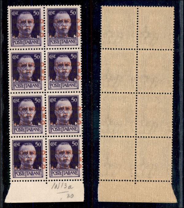 1943 - 50 cent (12Agb - carnicino) - soprastampa a destra - blocco di 8 - gomma integra (320)