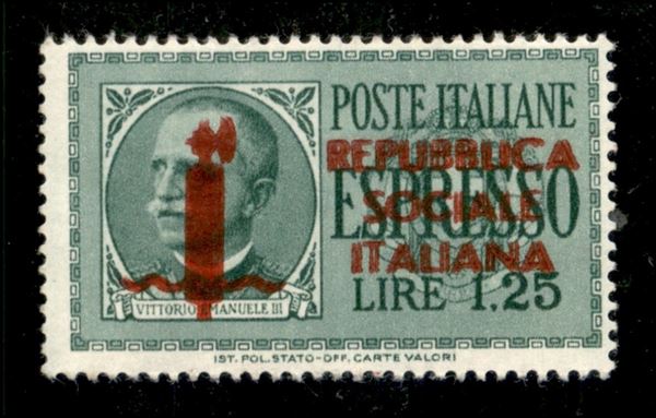 1944 - 1,25 lire Espressi (21Dc) con doppia soprastampa rosso bruno - gomma integra con lieve spellamento in angolo basso a destra