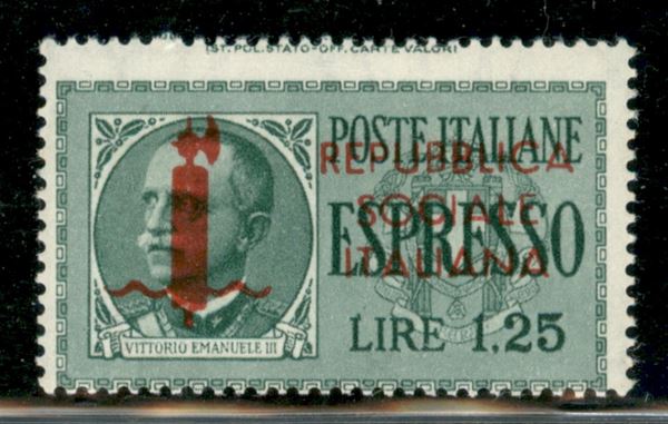1944 - 1,25 lire Espresso (21hc) - dentellatura orizzontale spostata in alto - gomma integra