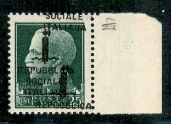 1944 - 25 cent (491b) - doppia soprastampa (una a cavallo) - bordo di foglio - gomma integra