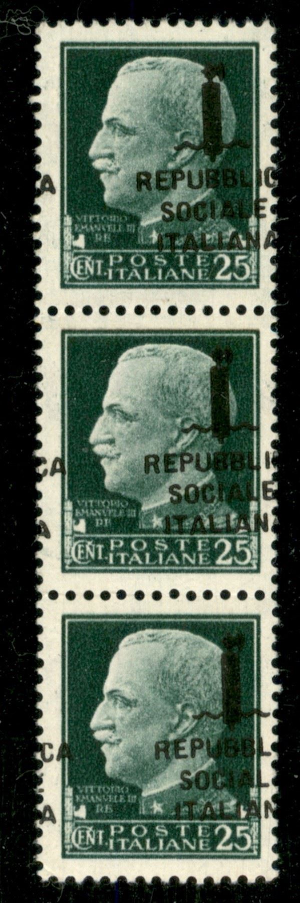 1944 - 25 cent (491h) - striscia verticale di 3 con soprastampe oblique - gomma integra