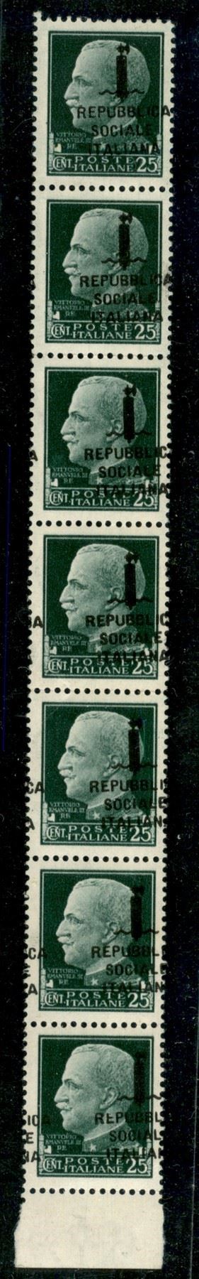 1944 - 25 cent (491h) - striscia verticale di 7 bordo foglio con soprastampe oblique - gomma integra