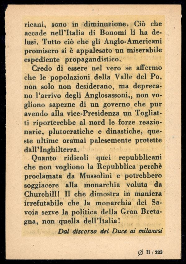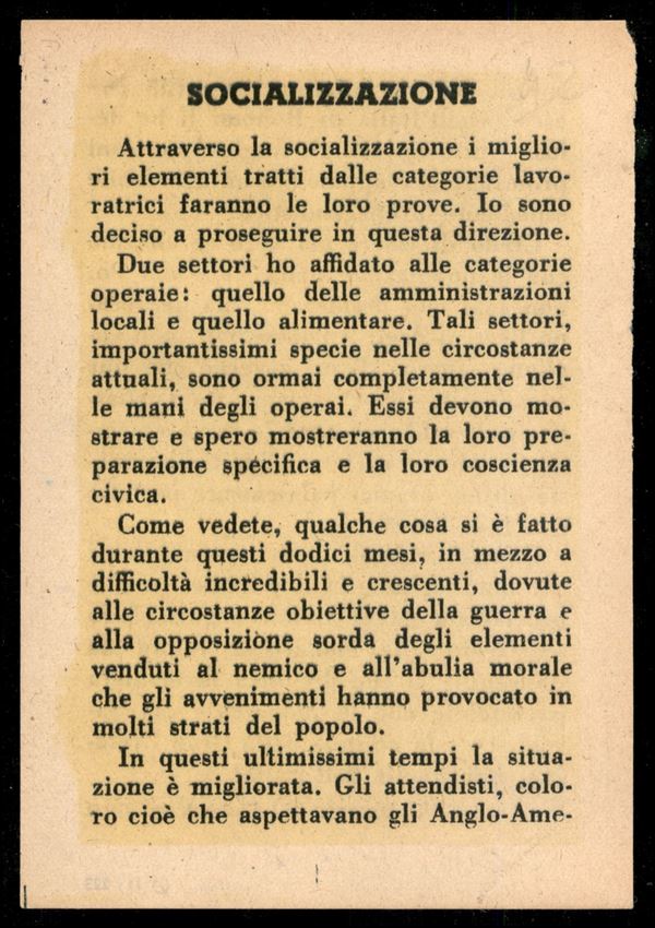 1944 - Socializzazione - volantino di propaganda (8X12)