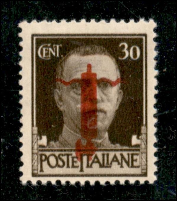 1944 - Verona - 30 cent (492G - soprastampa bruna) con fascio capovolto - gomma integra