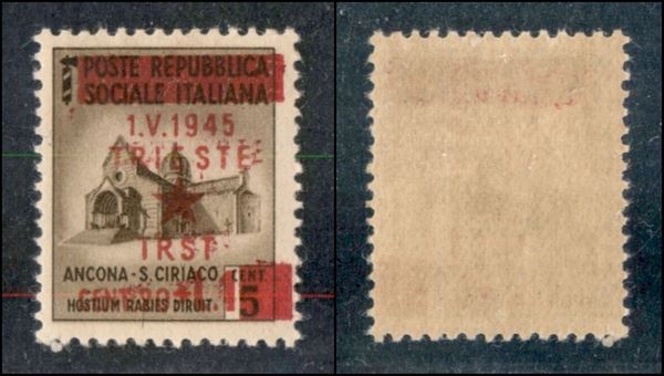 1945 - 20 cent + 1 lira su 5 cent (1b) - doppia soprastampa parziale - gomma integra