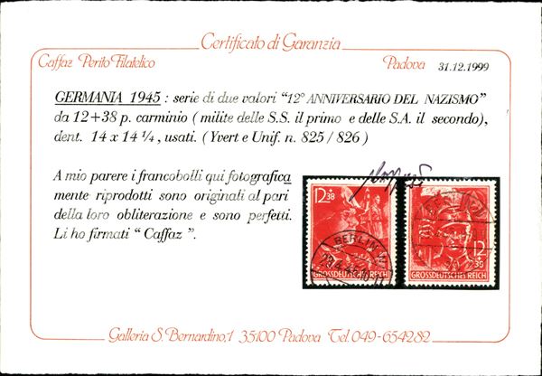 1945 - SA + SS (909/910) - serie completa usata - cert. Caffaz