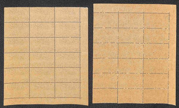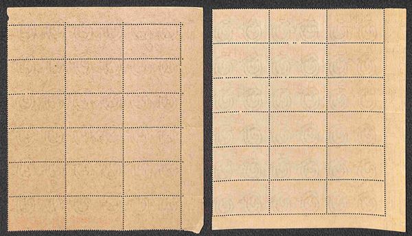1945/47 - Posta Aerea (3/6) - insieme di 4 valori della serie in blocchi di 18 angolo di foglio - gomma integra