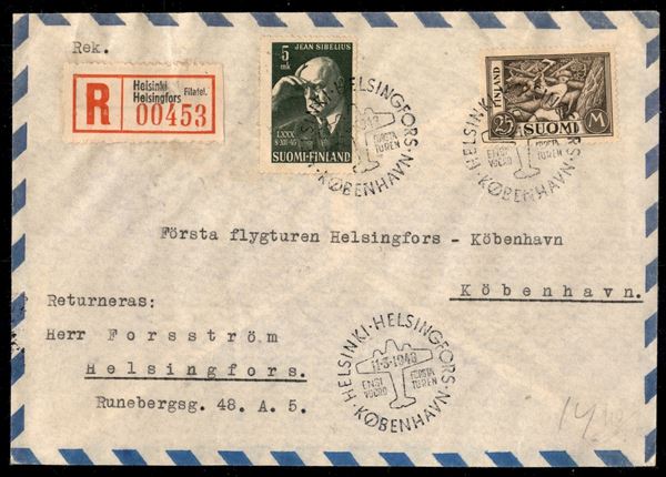 1948 (11 marzo) - Helsinki Kopenhagen - aerogramma raccomandato