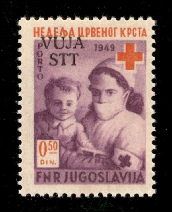 1950 - 0,50 din Croce Rossa (34b) con soprastampa in alto - gomma integra