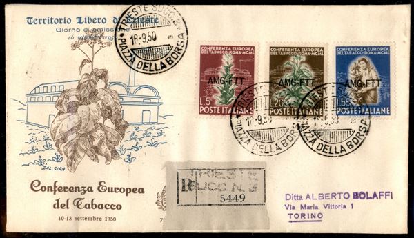 1950 - FDC Tabacco (84/86) - serie completa su busta Venetia Club