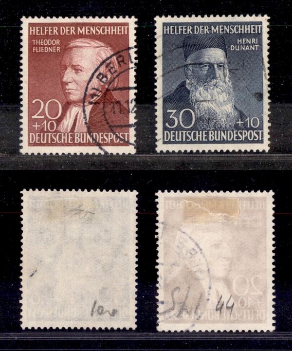 1952 - 20+10 pfenning e 30+10 pfenning Benefattori Umanità (158/159) - 1 due alti valori della serie - usato (90+)