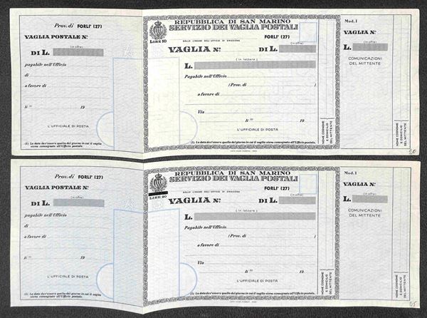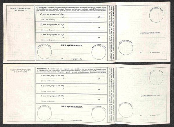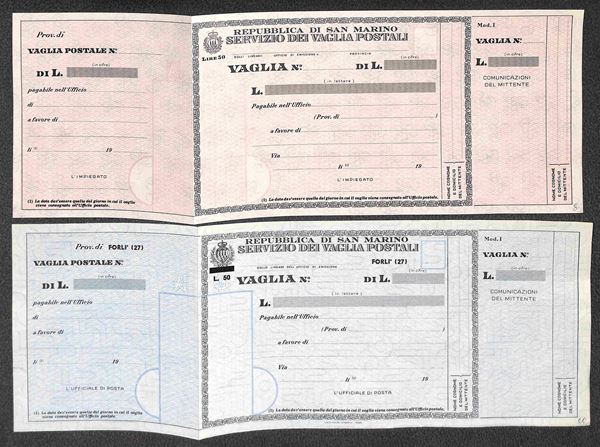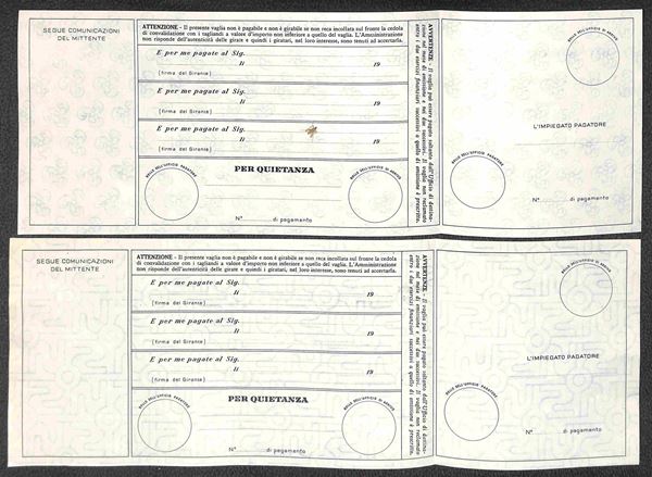 1958/1980 - Insieme di cinque Bollettini Vaglia (V22 + V23 + V27 + V28 + V29) nuovi