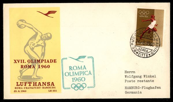 1960 (25 agosto) - Volo Olimpico Roma Amburgo (Pellegrini 1242) - aerogramma da San Marino