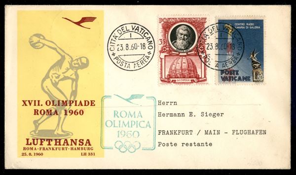 1960 (25 agosto) - Volo Olimpico Roma Francoforte (Pellegrini 1240) - aerogramma dal Vaticano