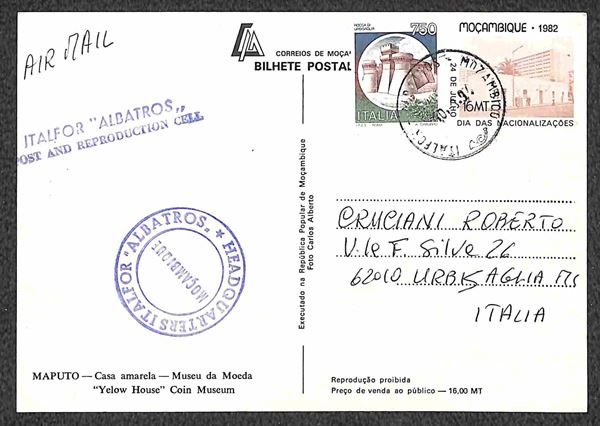 1983/84 lotto di due cartoline ed una lettera espresso con annulli della missione militare Italfor Albatros Mozambico - le cartoline con affrancatura mista Italia Mozambico