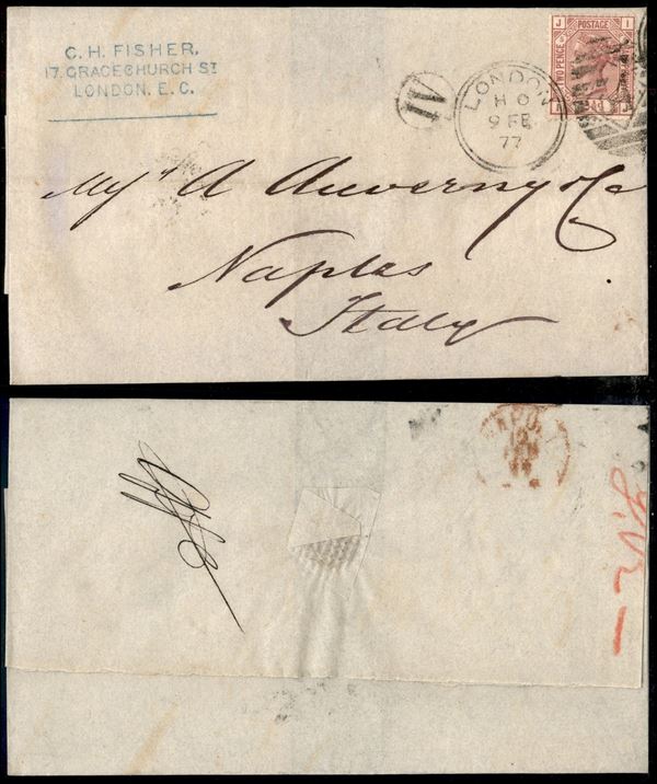 2 1/2 pence (47 - tav. 5) su lettera da Londra a Napoli del 9.2.77
