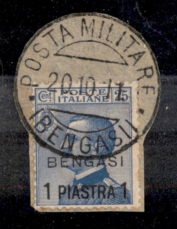 20.10.1911 - 1 piastra su 25 cent (2) usato nel giorno d’emissione su frammento (275++)
