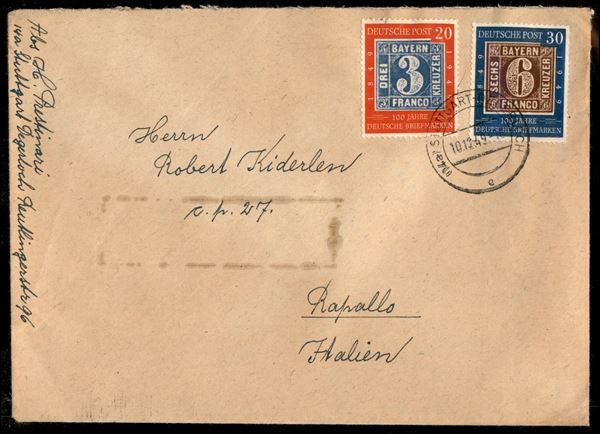 20 pfenning (114) + 30 pfenning (115) - su busta da Stoccarda a Rapallo del 10.12.49