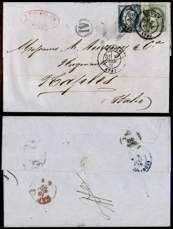 25 cent (51) + 5 cent (48) - lettera da Rouen a Napoli del 7.6.76