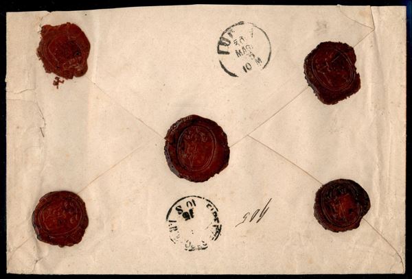 30 + 40 cent Vittorio Emanuele II (T19 + T20) su raccomandata da Firenze per Lucca del 28.5.75