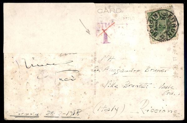 4 sen (230) su cartolina da Keelung a Riccione del 28.2.38