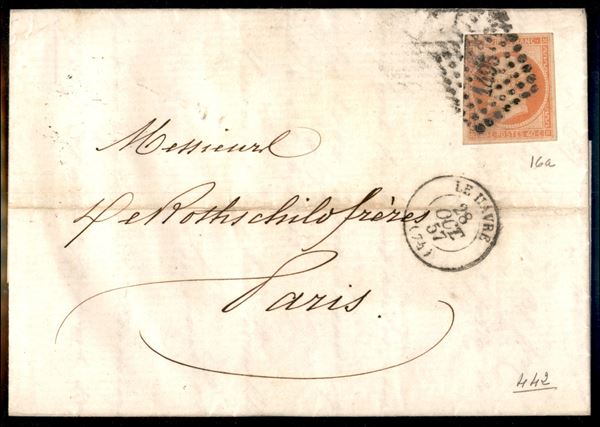 40 cent Napoleone III (16 + 16a + 16b) - i tre valori con tonalità differenti isolati su tre diverse letterine