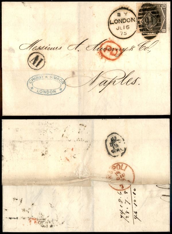 6 pence (44 - tav. 14) bordo foglio su lettera da Leeds a Napoli del 16.6.75