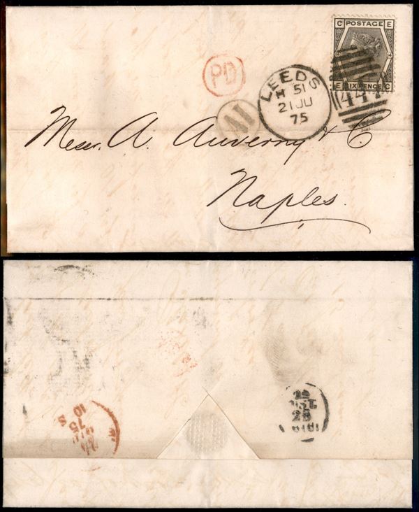 6 pence (44 - tav. 14) su lettera da Leeds a Napoli del 21.6.75