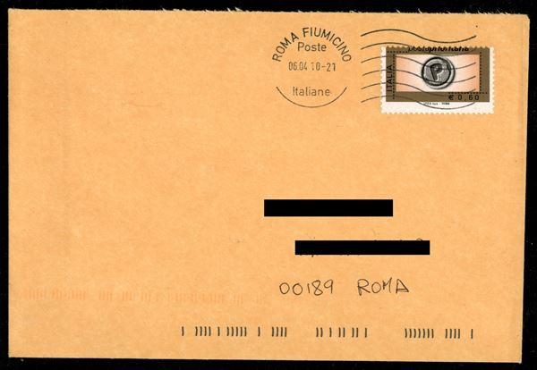 60 cent Prioritaria (2932A) con dentellatura orizzontale spostata in basso isolato su busta per cittą Roma 6.4.10