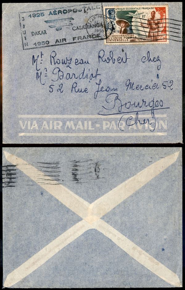 A.O.F. - 1950 (3 giugno) - Dakar Casablanca - aerogramma per Bourges