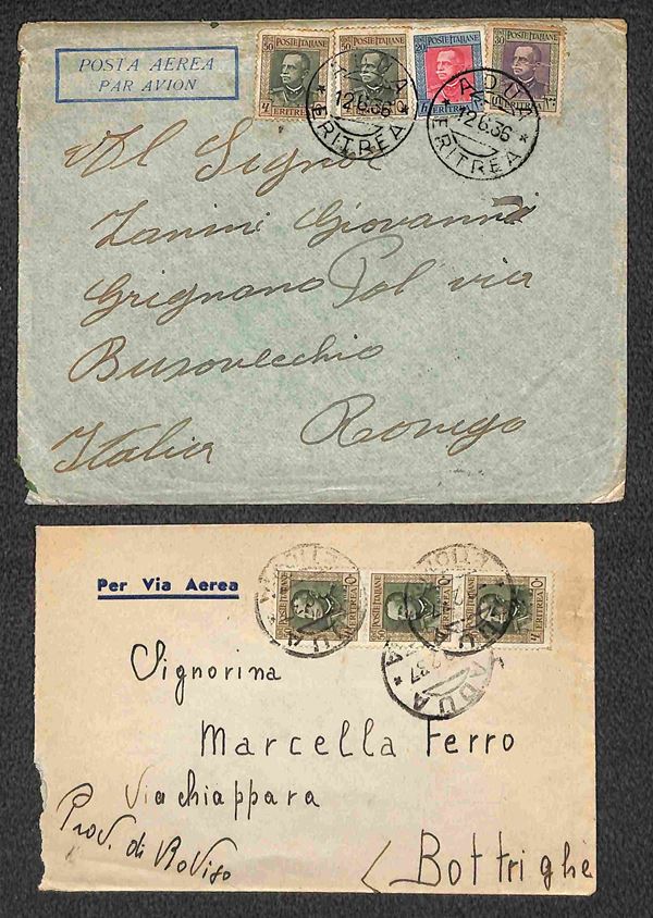 Adua (Etiopia/Eritrea – P.ti 5) – due aerogrammi per l'Italia del 1936/1937