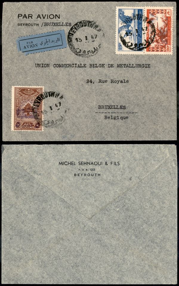 Aerogramma da Beyrouth a Bruxelles del 13.1.47