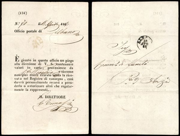 Albano - circolare a stampa - avviso di pacco per la Comm. di Sanità di Anzio del 18.4.1866