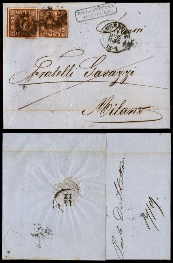 Bayern - due 6 kreuzer (4) su lettera da Augsburg a Milano del 11.12.55 - pezzo di destra corto in basso