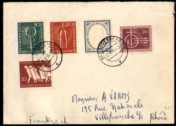 Busta da Bad Godesberg a Rhone del 27.9.55 (210 + 215/216 + 217/218)